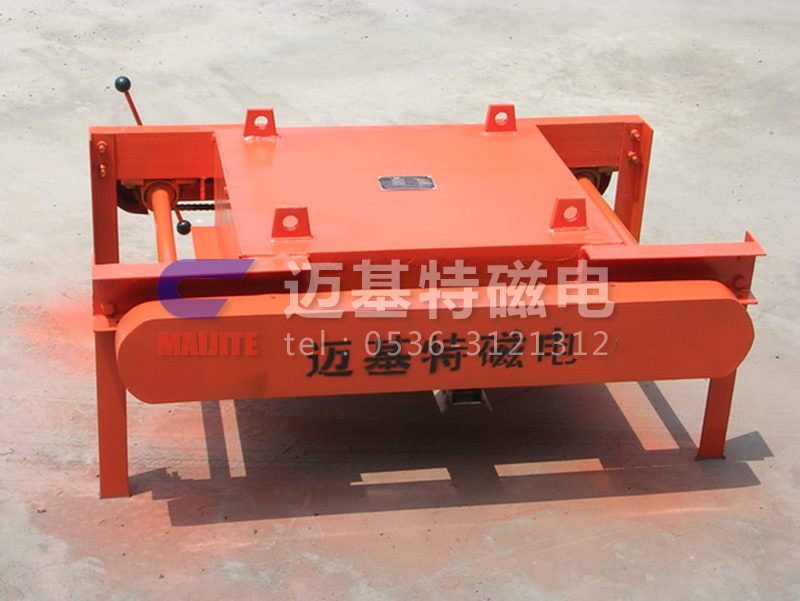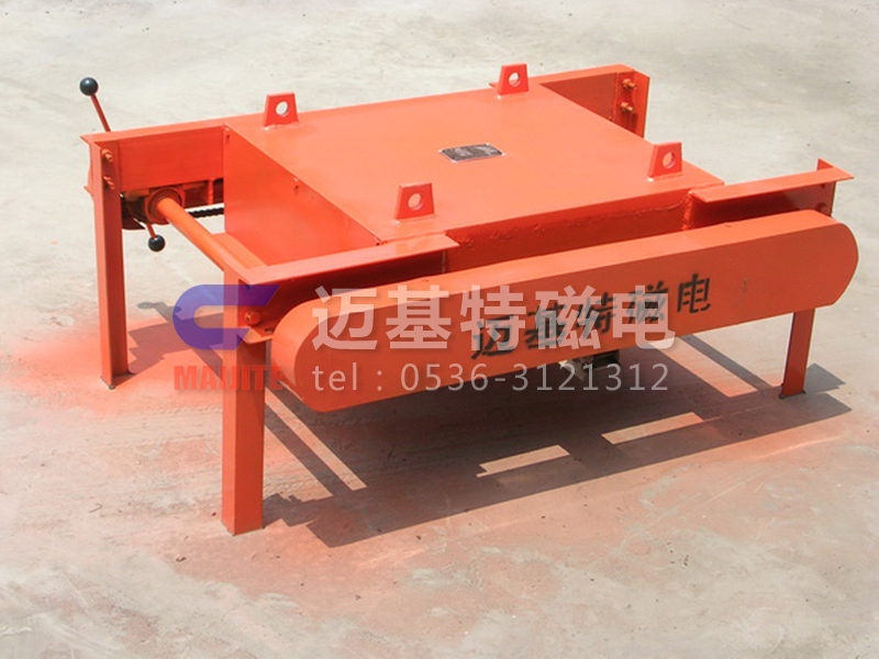 RCYP系列手動缷鐵式永磁除鐵器是采用高性能強磁材料作勵磁的永磁除鐵器基礎(chǔ)上增添了鏈條、刮板、 手柄等缷鐵裝置,通過手搖作動力帶動鏈條上刮板將吸附在除鐵器上的鐵磁性物質(zhì)刮出,這樣省去了人工用手清理鐵塊的麻煩。產(chǎn)品具有磁場強、吸力大、無需電能、安裝使用方便等特點。